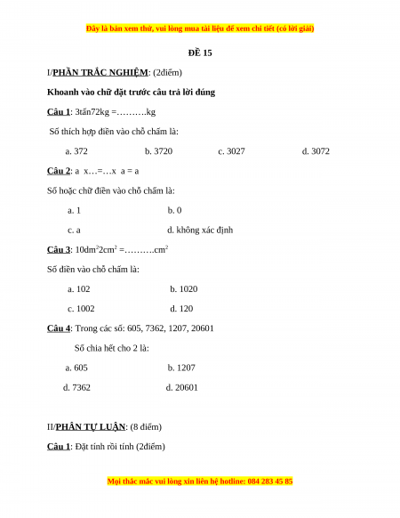 Đây là bản xem thử, vui lòng mua tài liệu để xem chi tiết (có lời giải)