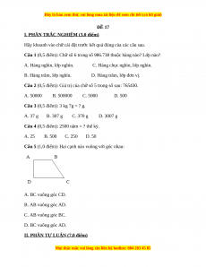 Câu 2 (0,5 điểm): Giá trị của chữ số 5 trong số sau: 765430.