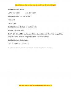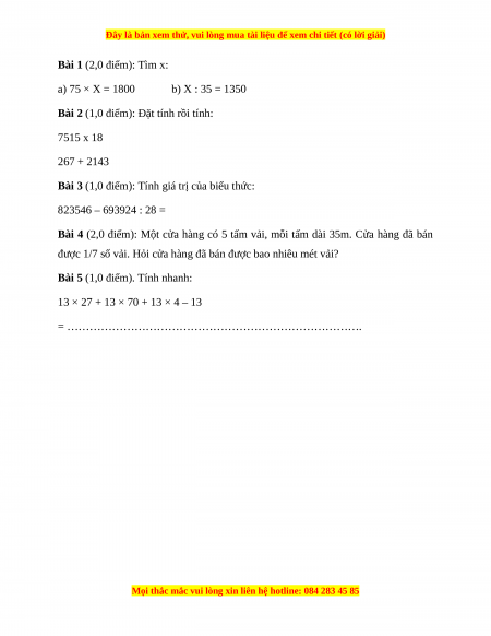 Bài 4 (2,0 điểm): Một cửa hàng có 5 tấm vải, mỗi tấm dài 35m. Cửa hàng đã bán