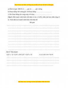 Câu 5: Một mảnh vườn hình chữ nhật có chu vi là 90, chiều dài hơn chiều rộng 21