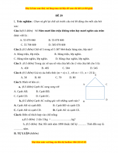 Câu 1:(0.5 điểm) Số Năm mươi lăm triệu không trăm bảy mươi nghìn sáu trăm