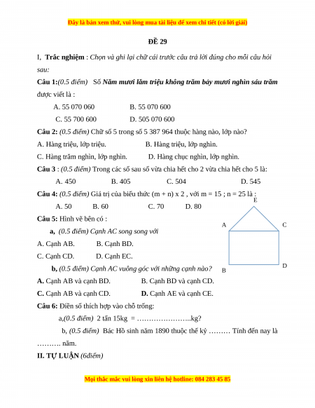 Đây là bản xem thử, vui lòng mua tài liệu để xem chi tiết (có lời giải)