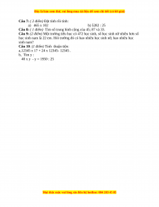 Câu 8: ( 1 điểm) Tìm số trung bình cộng của 45; 87 và 33.