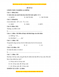 Câu 9 ( 0,5 điểm) M3 Tính bằng cách thuận tiện ( 56 x 49) : 7 Câu 10 ( 1 điểm) M4