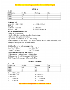 ĐỀ SỐ 45 1. Số Số bị chia Số chia Thương Dư 8469 241 1983 14 7936 26 2) Tìm x, biết a) x : 305 = 642 + 318 b) x :104 = 635 x 2 3)Tính a) 27 356 +423 101 c) 7281 : 311 b) 6754 – 209 d) 6492 +18 544 : 4