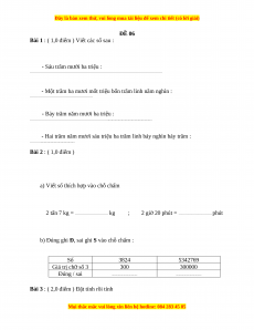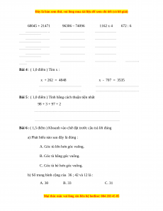 Đề thi Toán lớp 4 cuối kì 1 năm 2022 - 2023 (Đề 6)