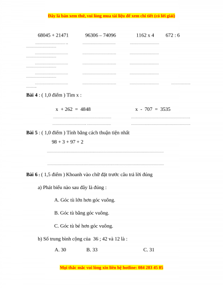Đây là bản xem thử, vui lòng mua tài liệu để xem chi tiết (có lời giải)