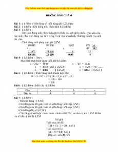 - Đặt tính đúng mỗi phép tính ghi 0,25đ ( đối với phép nhân, chia yêu cầu