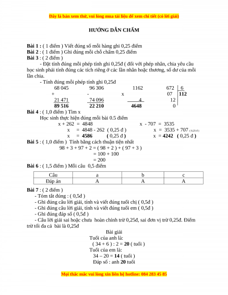 HƯỚNG DẪN CHẤM