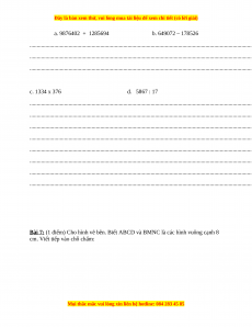 Bài 2: ( 1 điểm) . Có bao nhiêu số có 3 chữ số mà mỗi chữ số của số đó đều giống nhau? a.7 b. 8 c. 9 d.1 B ài 3