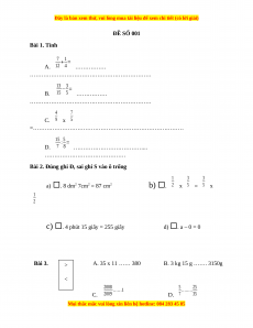 ĐỀ SỐ 001 Bài 1. Tính 7 1 + = A. 12 4 …………….