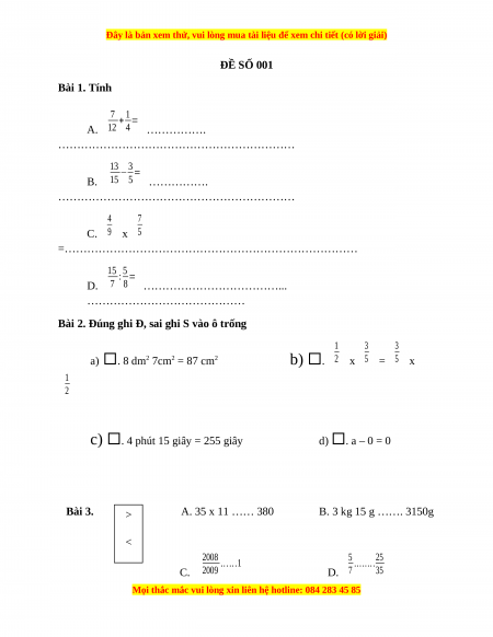 Đây là bản xem thử, vui lòng mua tài liệu để xem chi tiết (có lời giải)