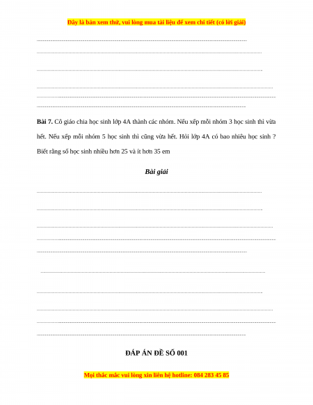 Bài 7. Cô giáo chia học sinh lớp 4A thành các nhóm. Nếu xếp mỗi nhóm 3 học sinh thì vừa