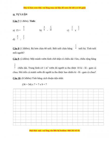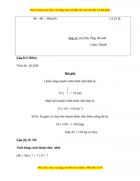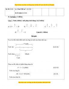 Câu 8 (1.5điểm). Bà hơn cháu 60 tuổi. Biết tuổi cháu bằng 4 tuổi bà. Tính tuổi mỗi người?