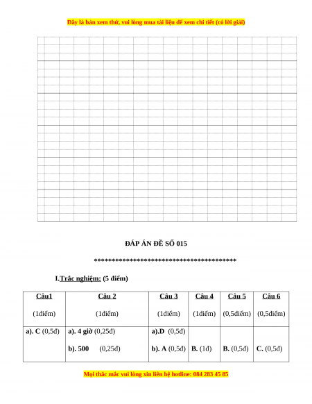 (1điểm) (0,5điểm) (0,5điểm) a). C (0,5đ) a). 4 giờ (0,25đ) a).D (0,5đ) b). 500 (0,25đ)
