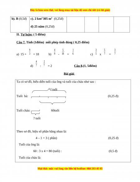 c). 2 km2 305 m2 (0,25đ) d) 25 năm (0,25đ)