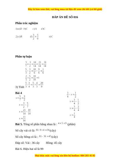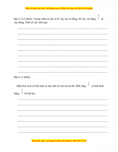 Bài 5: (2,5 điểm) Trong vườn có tất cả 81 cây vải và hồng. Số cây vải bằng 5 số