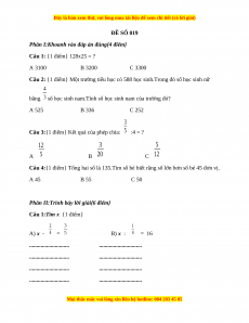 Đề thi Toán lớp 4 cuối kì 2 (Đề 19)