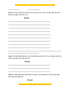 Câu 2:{2 điểm} Hiện nay tuổi mẹ là 35,tuổi con là 7.Hỏi cách đây mấy năm nữa