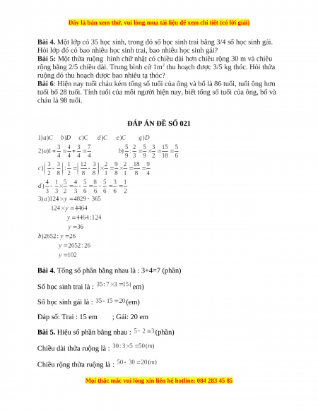 ĐÁP ÁN ĐỀ SỐ 021