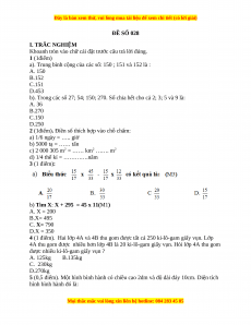 ĐỀ SỐ 028 I. TRẮC NGHIỆM