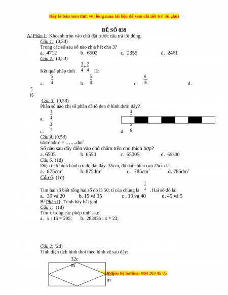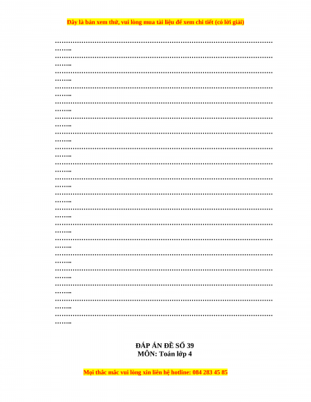 ……………………………………………………………………………………… …….. ĐÁP ÁN ĐỀ SỐ 39 MÔN: Toán lớp 4