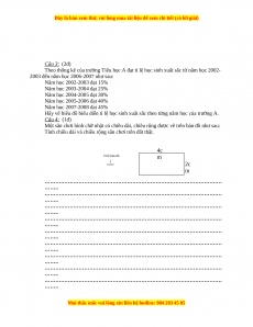 Hãy vẽ biểu đồ biểu diễn tỉ lệ học sinh xuất sắc theo từng năm học của trường A. Câu 4: (1đ)