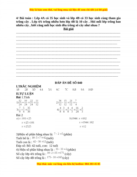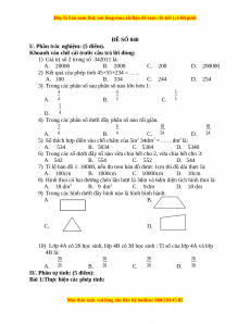Đề thi Toán lớp 4 cuối kì 2 (Đề 40)