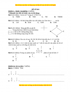 Bài 4 (0,5 điểm): Cho các số sau: 20; 30; 50; 90 số chia hết cho 2, 3, 5 và 9 là: A 20. B 30. C 50. D 90.