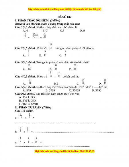 Đây là bản xem thử, vui lòng mua tài liệu để xem chi tiết (có lời giải)