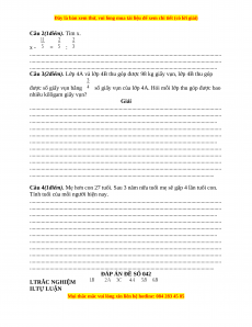 Câu 3(0,5 điểm). Trong các phân số sau phân số nào lớn nhất?