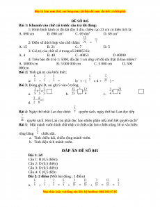 ĐÁP ÁN ĐỀ SỐ 045 Bài 1: 2đ Câu 1: B (0,5 điểm) Câu 2: D (0,5 điểm) Câu 3: D (0,5 điểm) Câu 4: C (0,5 điểm