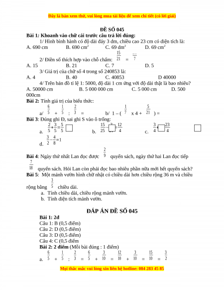 Đề thi Toán lớp 4 cuối kì 2 (Đề 45)