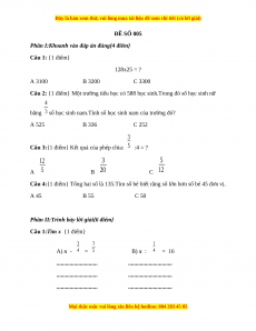 Đề thi Toán lớp 4 cuối kì 2 (Đề 5)