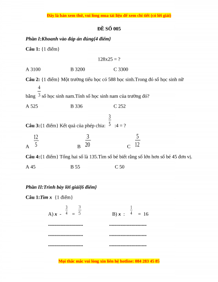 Đây là bản xem thử, vui lòng mua tài liệu để xem chi tiết (có lời giải)