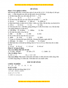 và chiều rộng bằng 2/3 chiều dài. Tính diện tích của mảnh vườn. ĐÁP ÁN ĐÊ SỐ 055 I.TRẮC NGHIỆM II.TỰ LUẬN