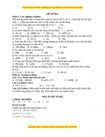 ĐÁP ÁN ĐÊ SỐ 055