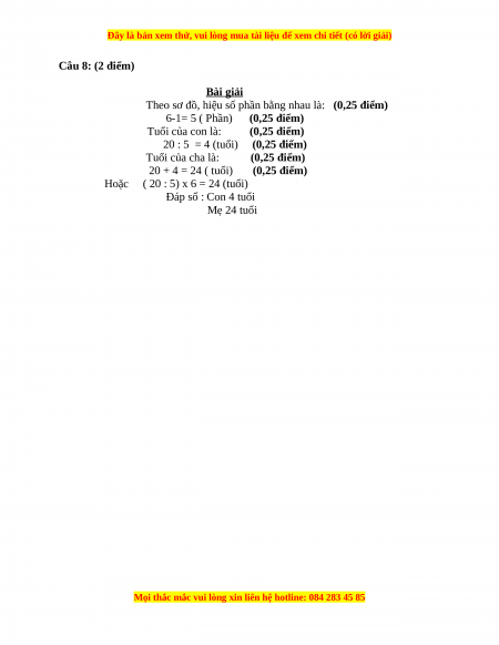 20 : 5 = 4 (tuổi) (0,25 điểm)