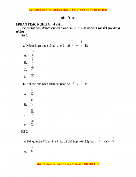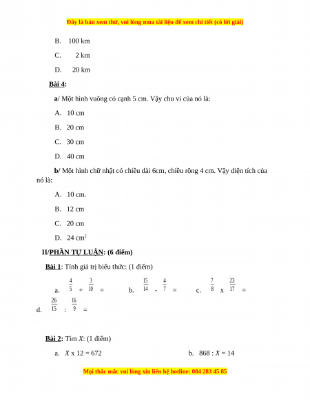 Đây là bản xem thử, vui lòng mua tài liệu để xem chi tiết (có lời giải)