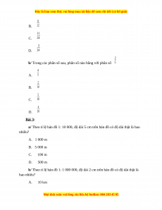 a/ Theo tỉ lệ bản đồ 1: 10 000, độ dài 5 cm trên bản đồ có độ dài thật là bao nhiêu? A. 1 000 m B. 5 000 m C. 100 m D. 500 m
