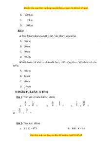 a/ Một hình vuông có cạnh 5 cm. Vậy chu vi của nó là: A. 10 cm B. 20 cm C. 30 cm D. 40 cm