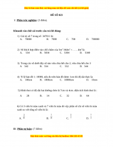 Đề thi Toán lớp 4 cuối kì 2 năm 2022 - 2023 (Đề 24)