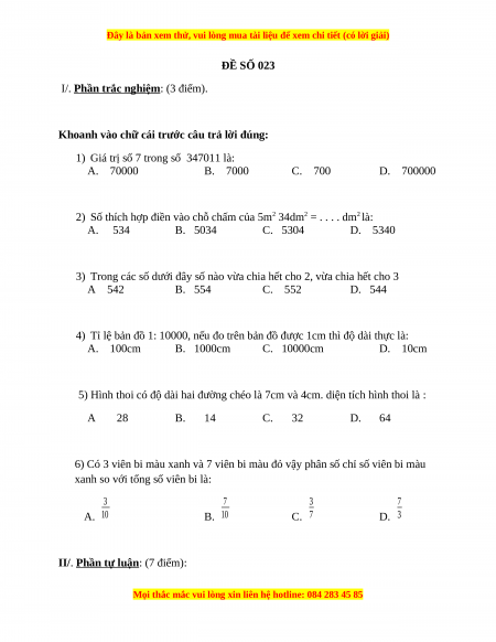 Đây là bản xem thử, vui lòng mua tài liệu để xem chi tiết (có lời giải)