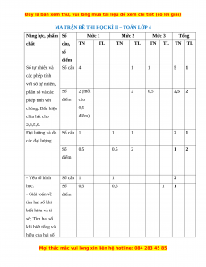 MA TRẬN ĐỀ THI HỌC KÌ II – TOÁN LỚP 4