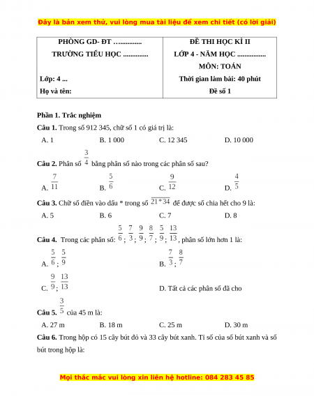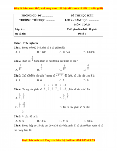 Đề thi Toán lớp 4 cuối kì 2 năm 2023 (Đề 61)