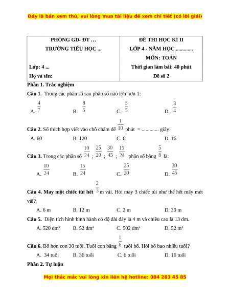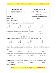 Đề thi Toán lớp 4 cuối kì 2 năm 2023 (Đề 63)