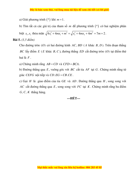 Bài 4. (1,5 điểm) Cho phương trình 2 x − (m + ) 2 2