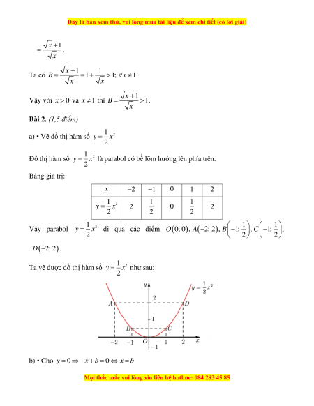Bài 2. (1,5 điểm) 1 Cho hai hàm số 2 y =