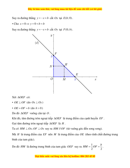 minh rằng tam giác OEF vuông cân và tìm b để tâm của đường tròn ngoại tiếp