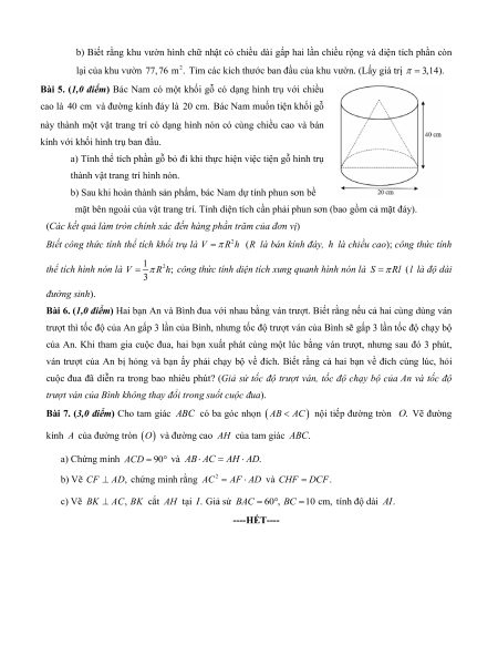 Bài 5. (1,0 điểm) Bac Nam co một khôi gô co dang hình trụ vơi chiêu